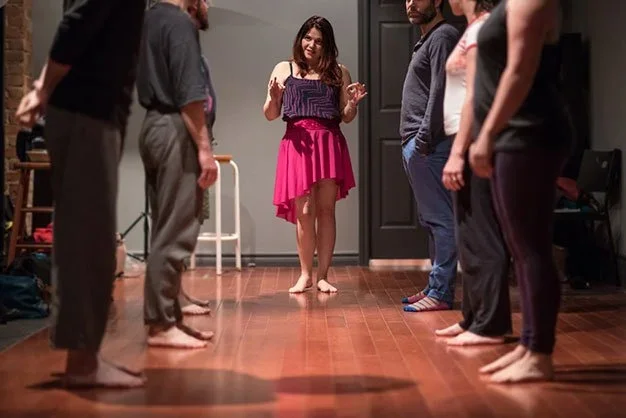 What’s different is the intent of these exercises. Sina builds on them so that what took minutes to establish a bond between paired performers can be re-established in seconds. At every stage there’s group discussion about what people are and aren’t comfortable with.